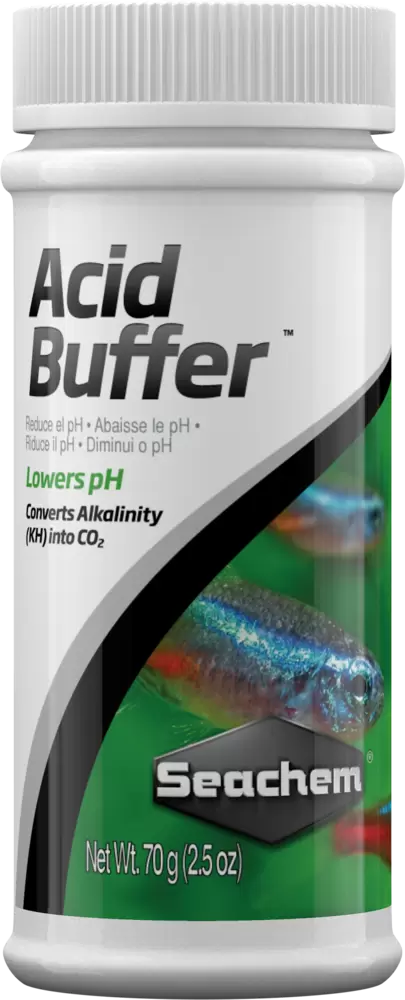Acid Buffer é uma solução tampão sem fosfatos para diminuir o pH e funciona bem com o Alkaline Buffer. Ambas as soluções são ideais para aquários com plantas ou para água dura onde soluções tampão a base de fosfatos podem trazer problemas com algas. Acid Buffer diminui o pH e funciona entre 6,0 e 8,0 quando usada com Alkaline Buffer. Como o Acid Buffer diminui o pH, converte alcalinidade por carbonatos (KH) em CO2 disponível.