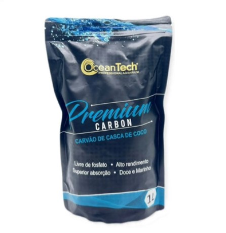 Carvão ativado produzido a partir de casca de coco e ativado através de vapor.