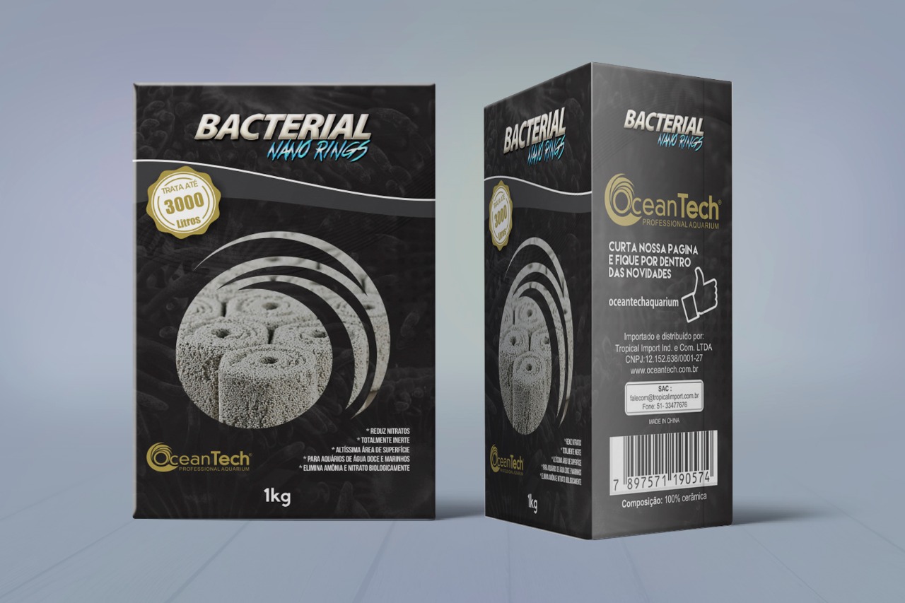 Bacterial Nano Rings OceanTech é produzido a partir de microesferas cerâmicas tridimensionais tendo assim uma área de superfície para a colonização de bactérias de até 10 vezes maior do que outras mídias filtrantes. Bacterial Nano Rings é altamente permeável permitindo uma distribuição de água uniforme em toda a mídia, cada micro esfera tem contato com o fluxo d água em todo seu entorno aumentando significativamente sua área de colonização. Ideal para filtros Hang-on, canisters, filtros de lago, sumps e em sistemas dry-wet.