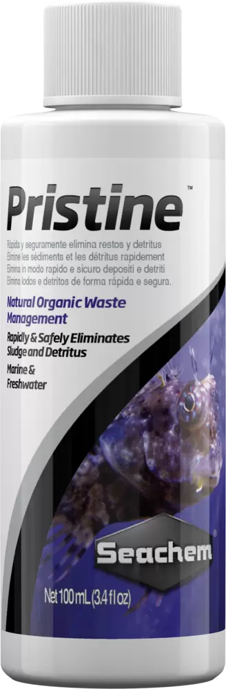 Pristine utiliza bio-aumento, um método não químico e natural, para melhorar a qualidade da água. Ele fornece as bactérias que decompõem o excesso de alimentos, resíduos e detritos em sistemas de água doce e marinhos. Ele também irá reduzir o excesso de nutrientes (por exemplo, amônia, nitratos e nitritos) que podem estimular o crescimento de organismos incômodos e organismos causadores de doenças. Aumenta a claridade da água e promove a saúde geral, melhora o ambiente aquático.