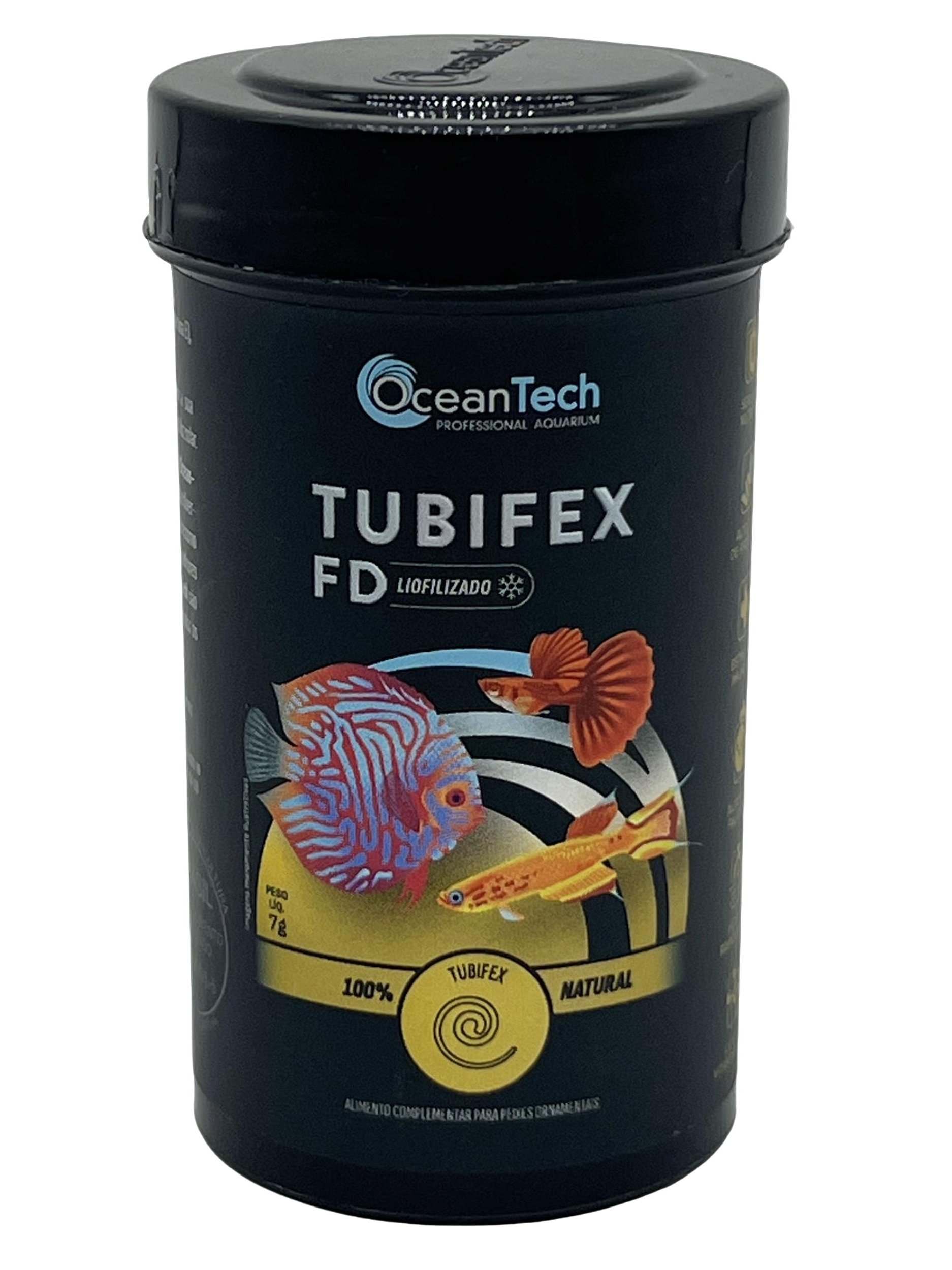 Oceantech Tubiflex FD é um excelente alimento suplementar 100% natural altamente proteico e palatável, suplementado com vitaminas E e C para estimular o sistema imunológico e o crescimento. O avançado do processo de liofilização oferece todos os benefícios do alimento fresco, sem odor e sujeira com maior segurança evitando a presença de organismos indesejados como os parasitas e bactérias normalmente encontrados em alimentos vivos. Oceantech Tubflex liofilizado mantém todos os valores nutricionais textura e sabor dos alimentos frescos, hidrata rapidamente quando colocado na água permanecendo inteiro tendo uma rápida aceitação. Indicado para alimentação de peixes pequenos e de médio porte de água doce em todas as fases da vida. A alimente de duas a três vezes por semana em pequenas quantidades que sejam consumidas sem deixar resíduos.